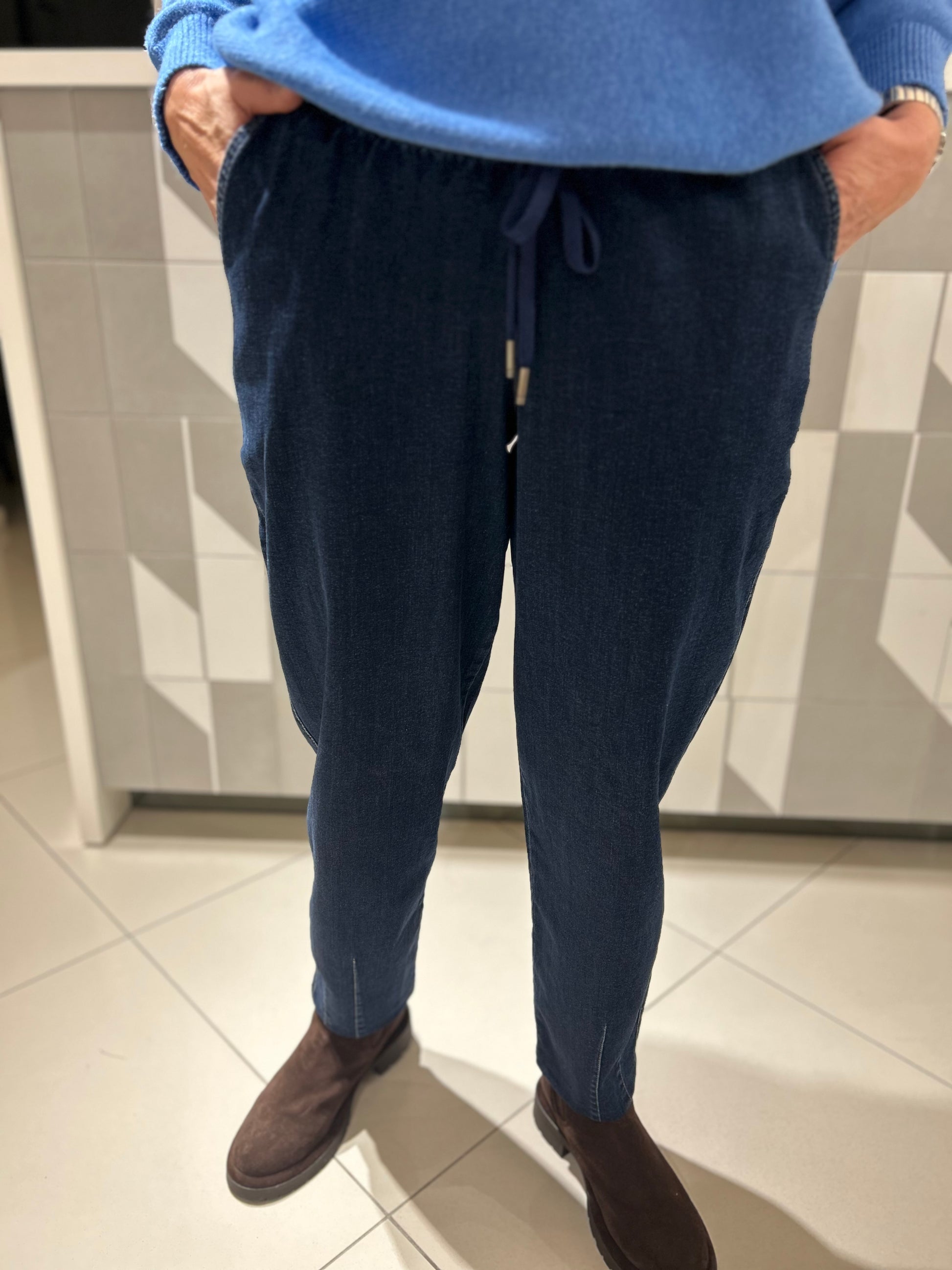 Džinsai su raišteliais didesniam dydžiui (K548)