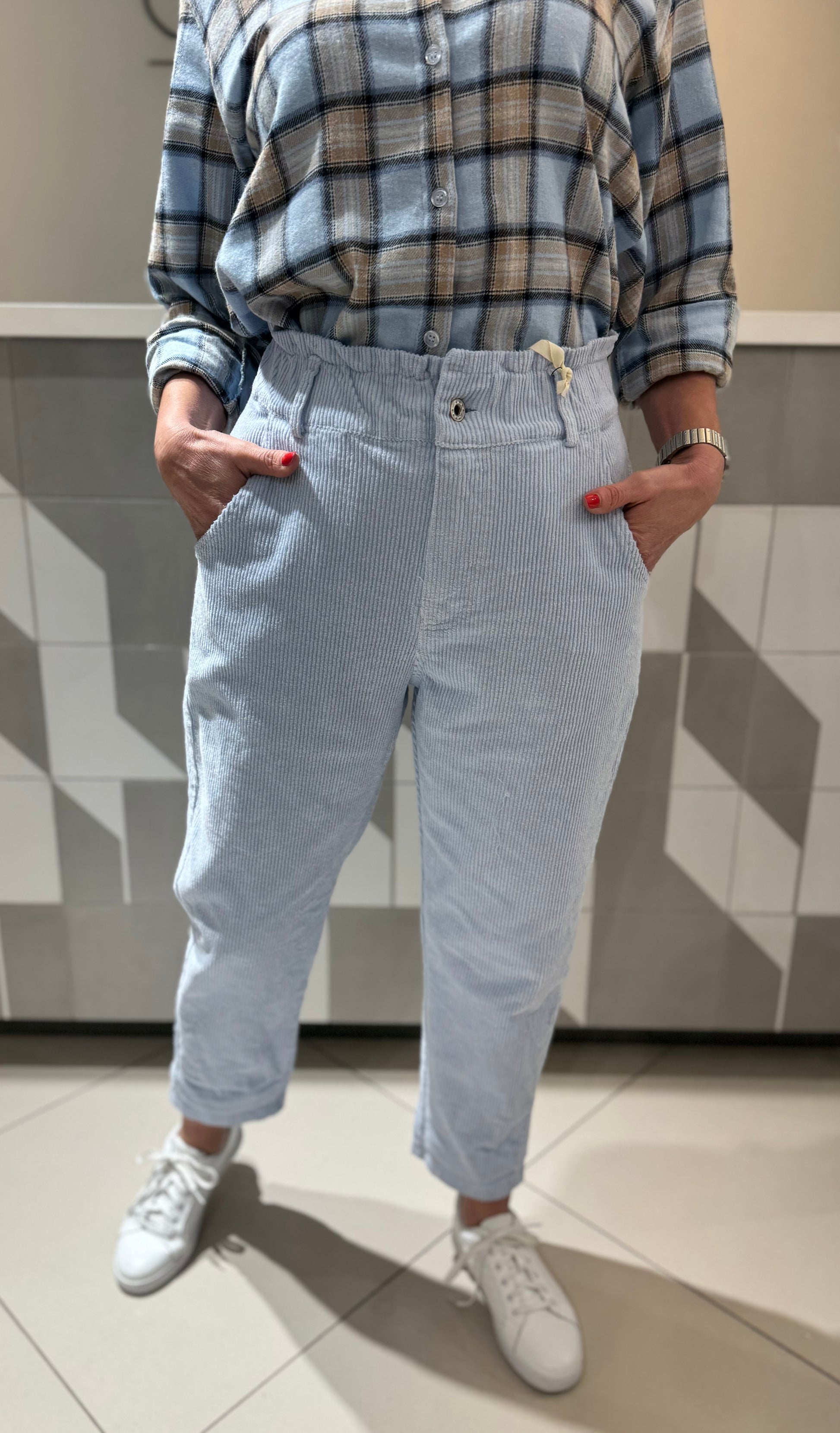 Stilingos, lengvos ir patogios kelnės iš švelnaus audinio, su elastingu juosmeniu ir kišenėmis. Puikiai tinka kasdieniam dėvėjimui ir laisvalaikiui, lengvai derinamos prie įvairių aprangos derinių.