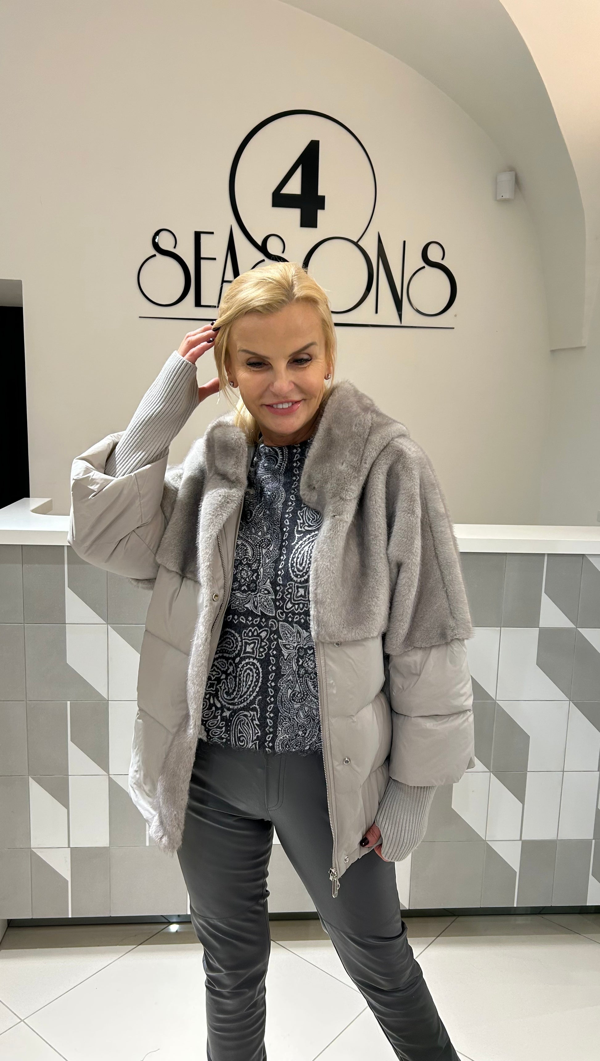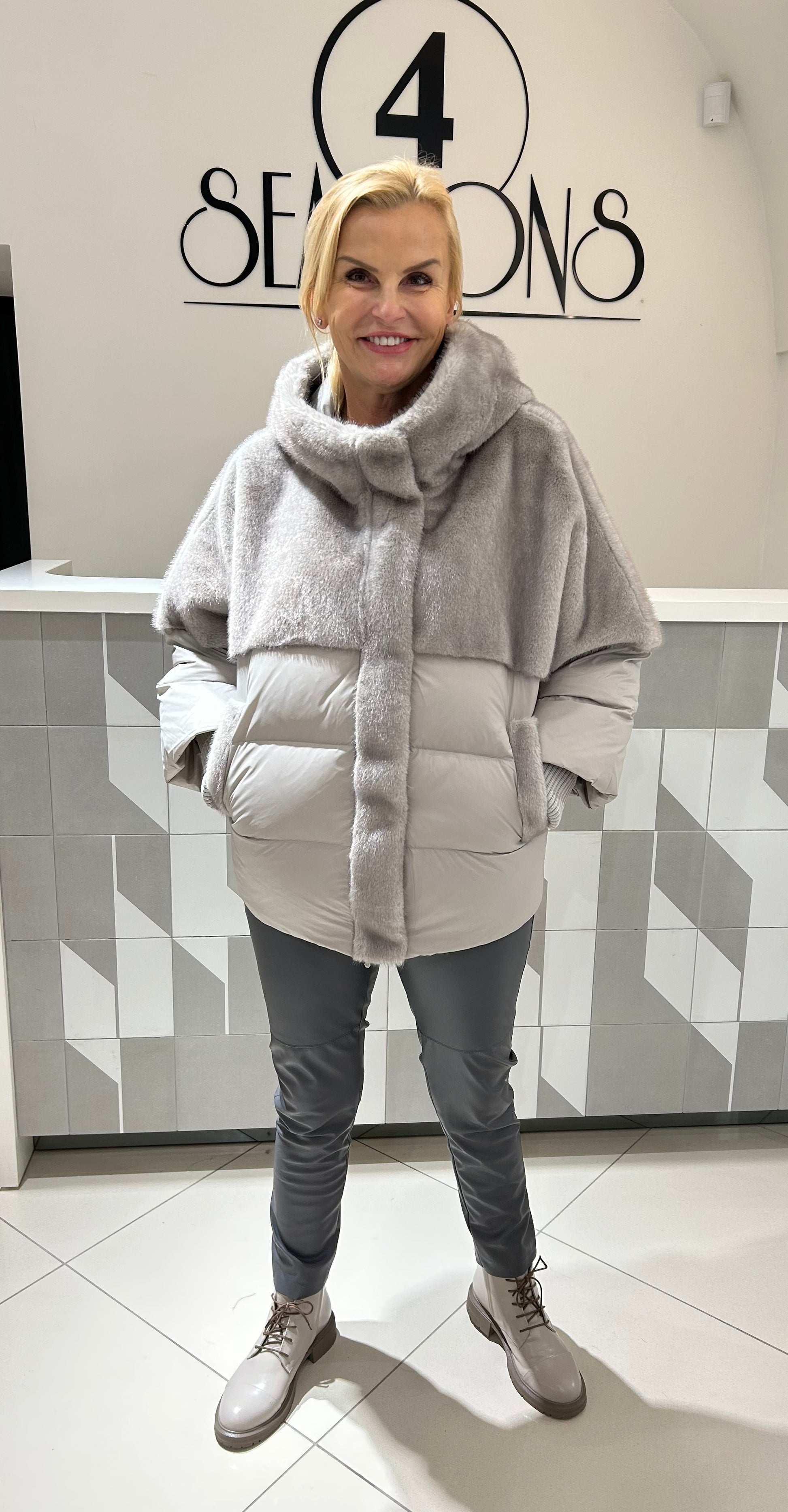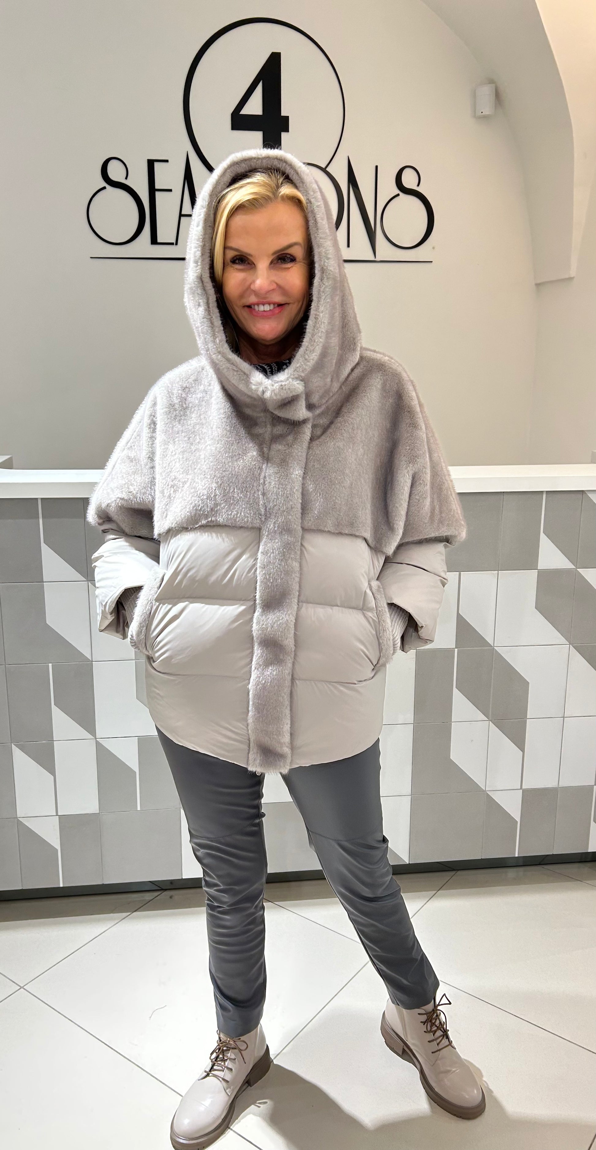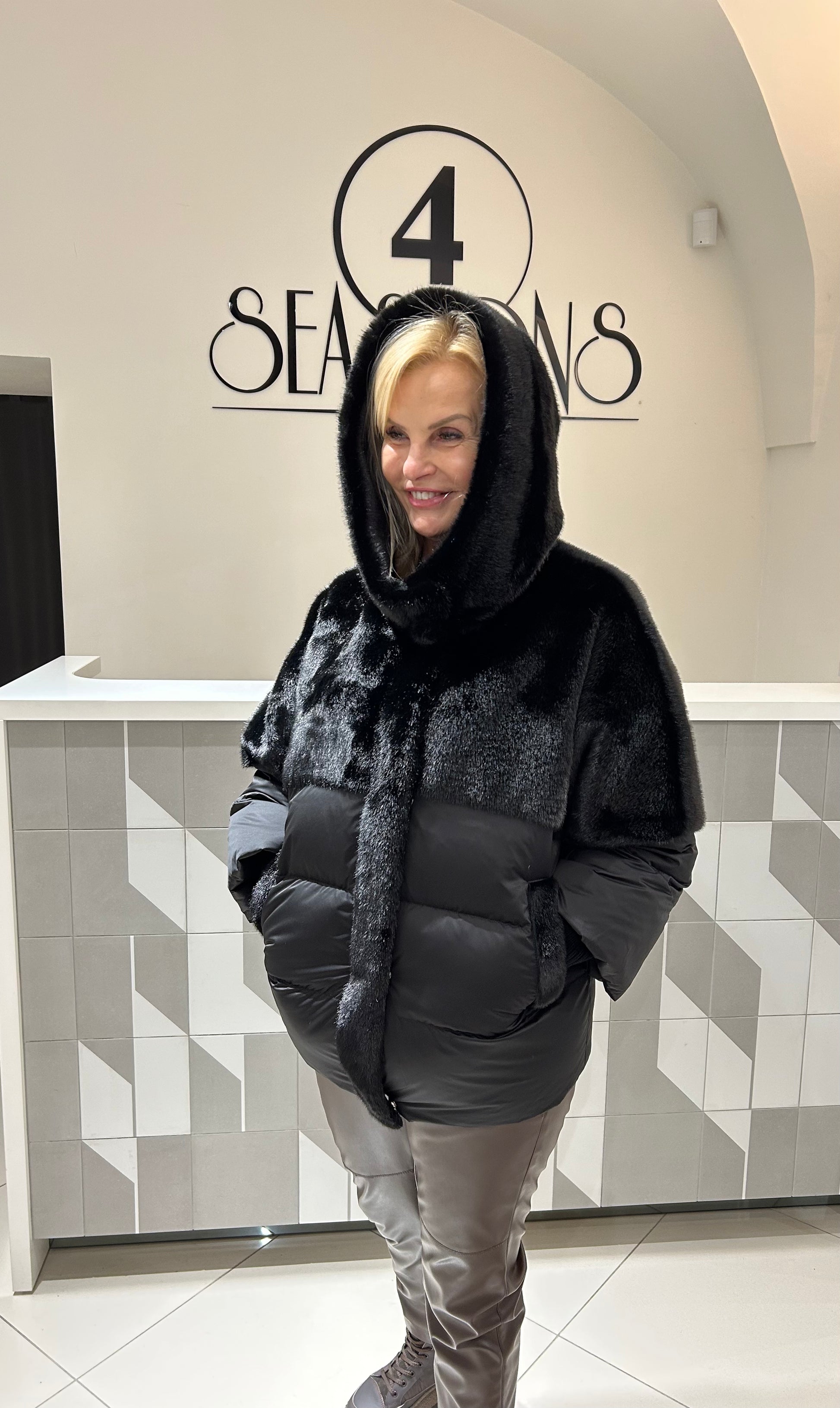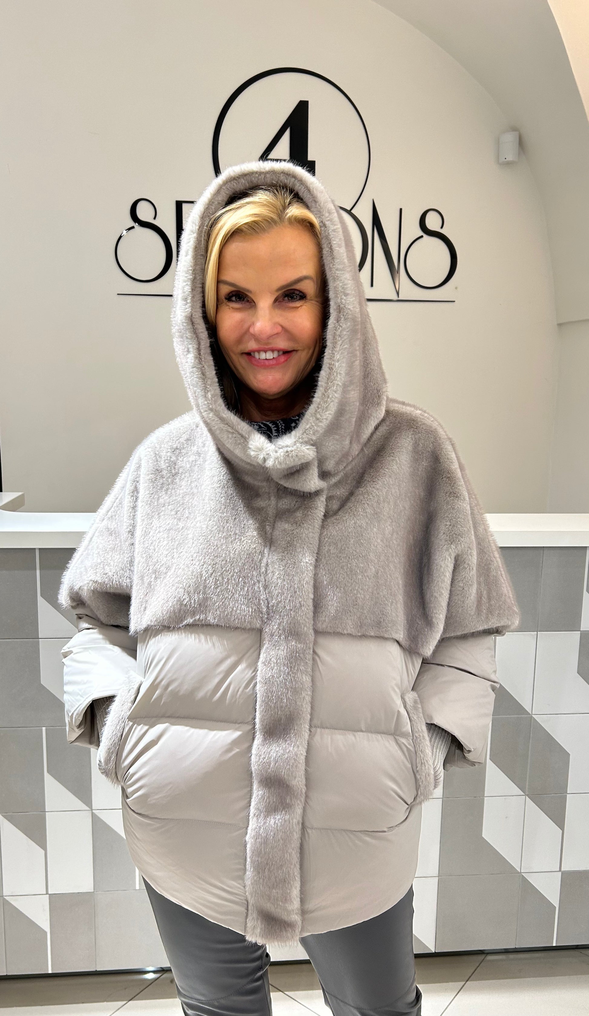 Pūkinė striukė su gobtuvu, modernaus dizaino, derinanti šilumą ir stilių. Minkštas, jaukus viršus ir lengvas pūkinis užpildas užtikrina komfortą bei apsaugą nuo šalčio. Laisvesnio silueto, su kišenėmis, puikiai tinka kasdieniam nešiojimui vėsesniu sezonu.