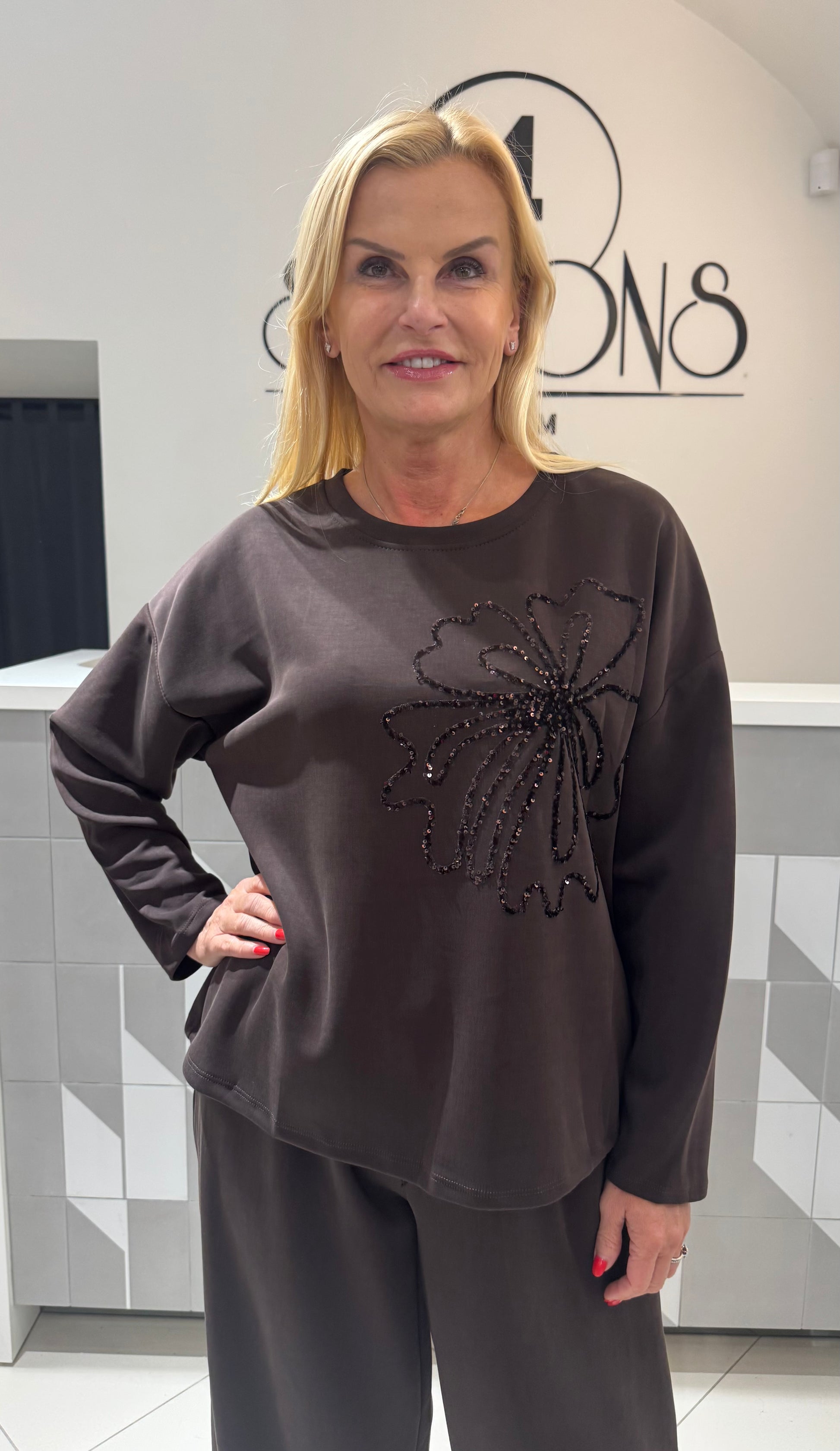 Džemperis su blizgia gėle (P830)